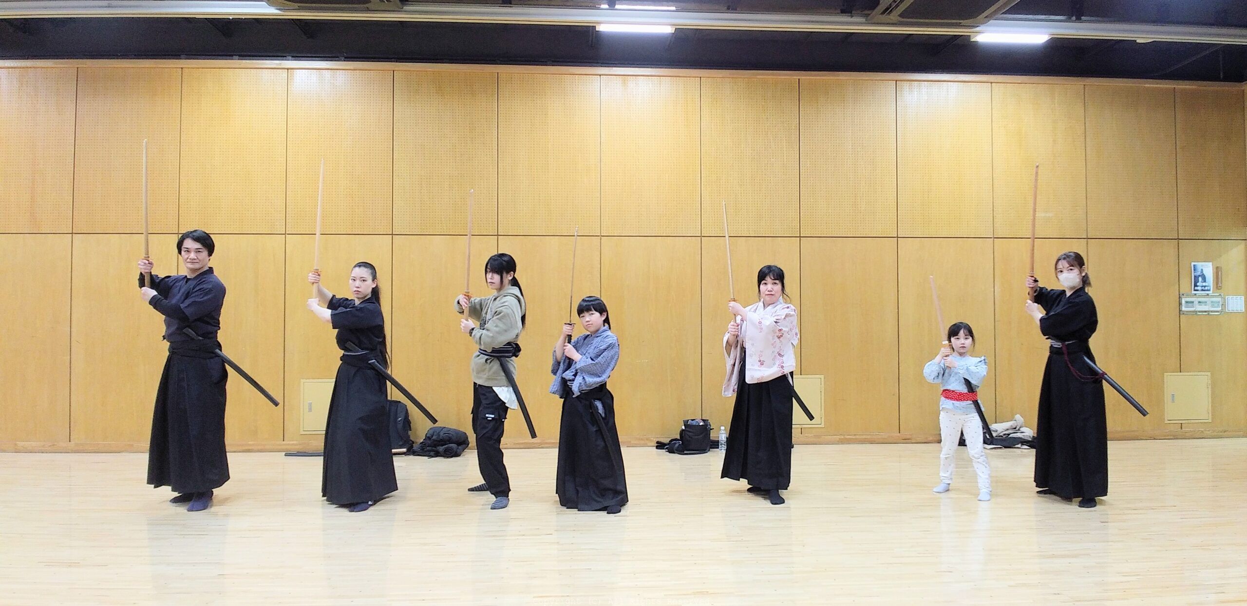 初級クラス ・基本所作 ・刀の振り方 ・基本抜刀納刀 ・足運び ・斬り結び ・剣術 ・受け返し ・抜刀術 ・対面型(1.2.3.4) ・個人型 ・立ち回り
