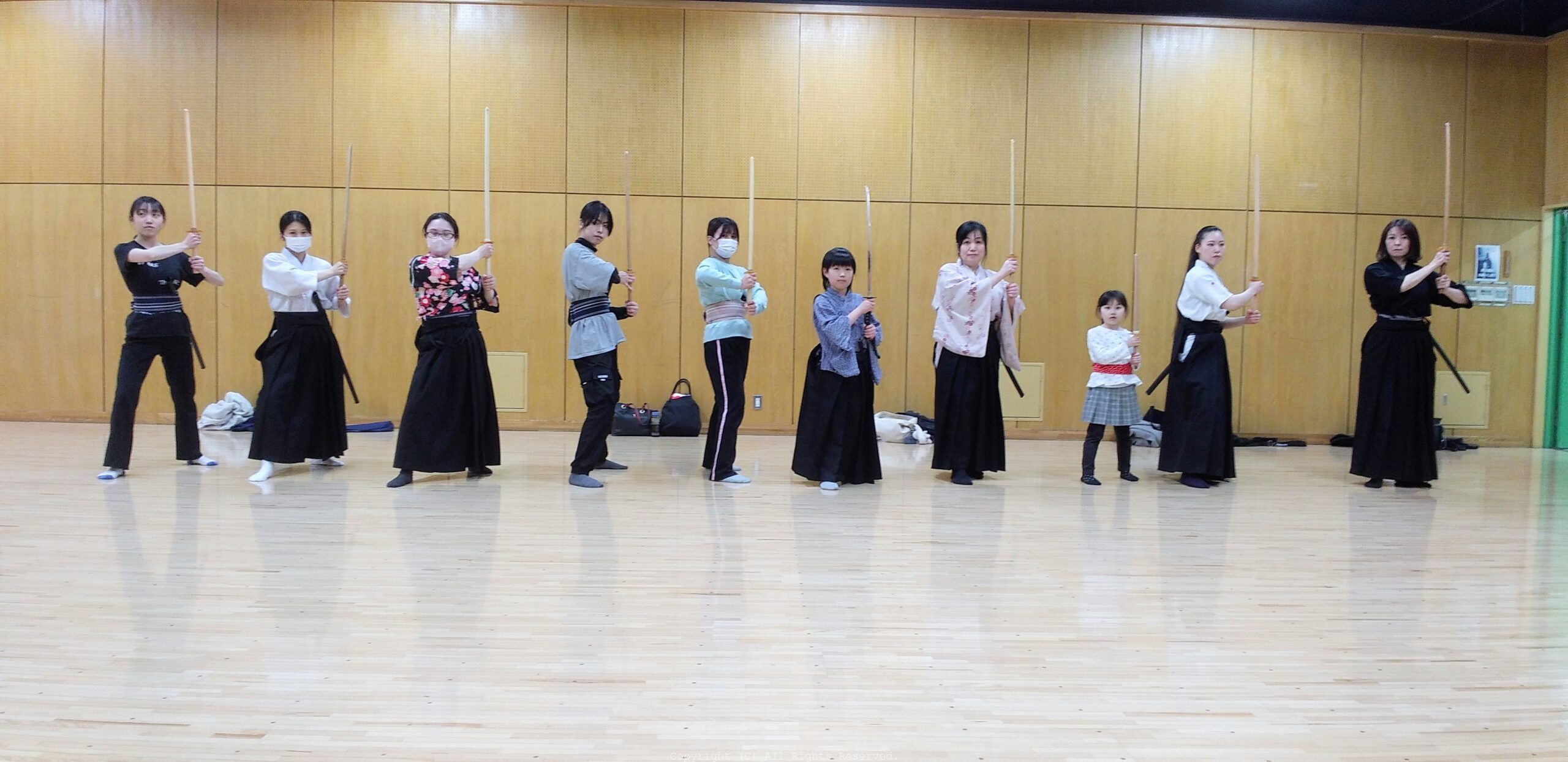 初級クラス ・基本所作 ・刀の振り方 ・基本抜刀納刀 ・足運び ・斬り結び ・剣術 ・受け返し ・抜刀術 ・対面型(1.2.3.4) ・個人型 ・立ち回り