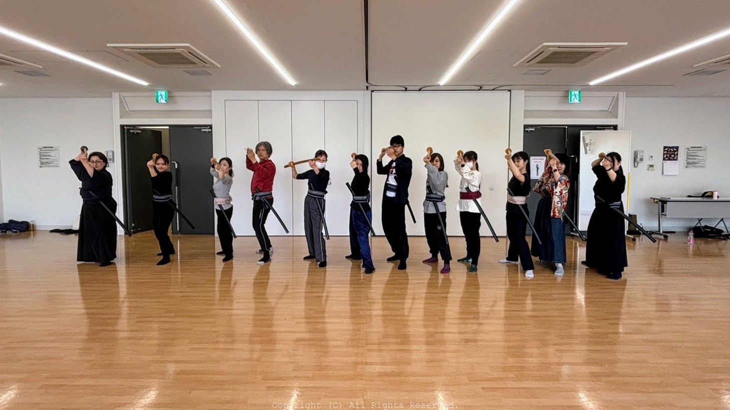 一般クラス ・基本所作 ・刀の振り方 ・対面抜刀 ・足運び ・斬り結び ・振り付け(逆手納刀) ・剣術 ・抜刀術 ・対面型(1.2.3.4.5) ・個人型 ・立ち回り(FY)